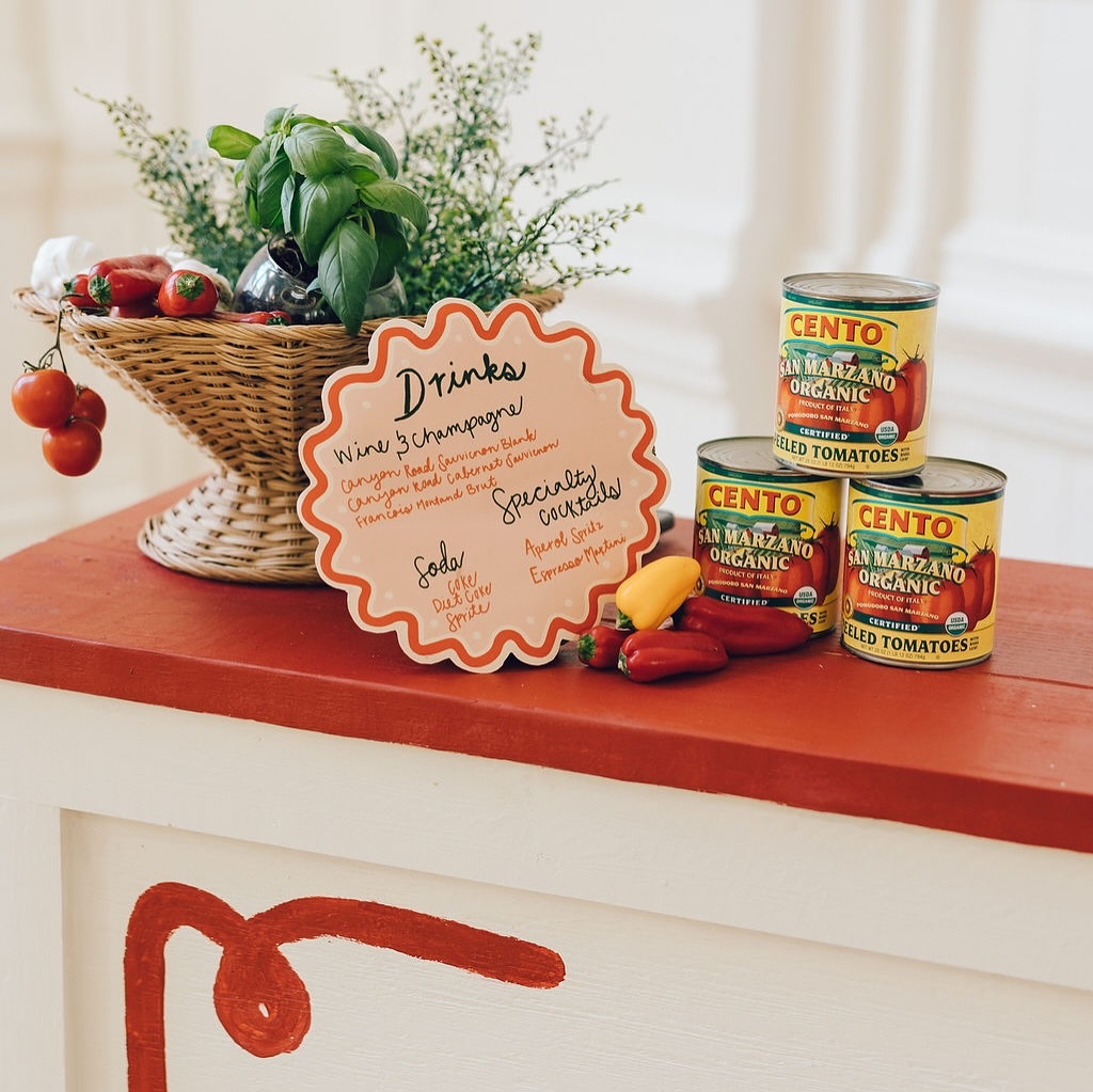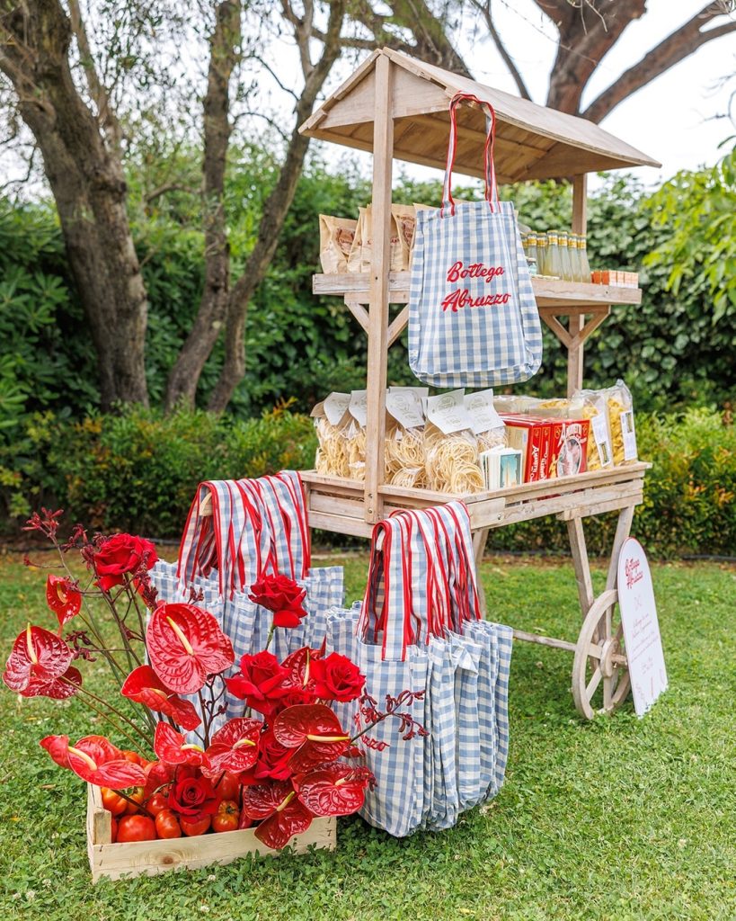 Send bridal shower guests home with personalized canvas tote bags featuring beautiful hand-drawn Italian illustrations that capture the “dolce vita” spirit. Totes can be filled with all the makings of their next Italian feast – pasta, canned tomatoes, a spice blend and olive oil.