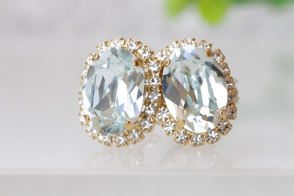 Ice Blue Aquamarine Crystal Wedding Earrings