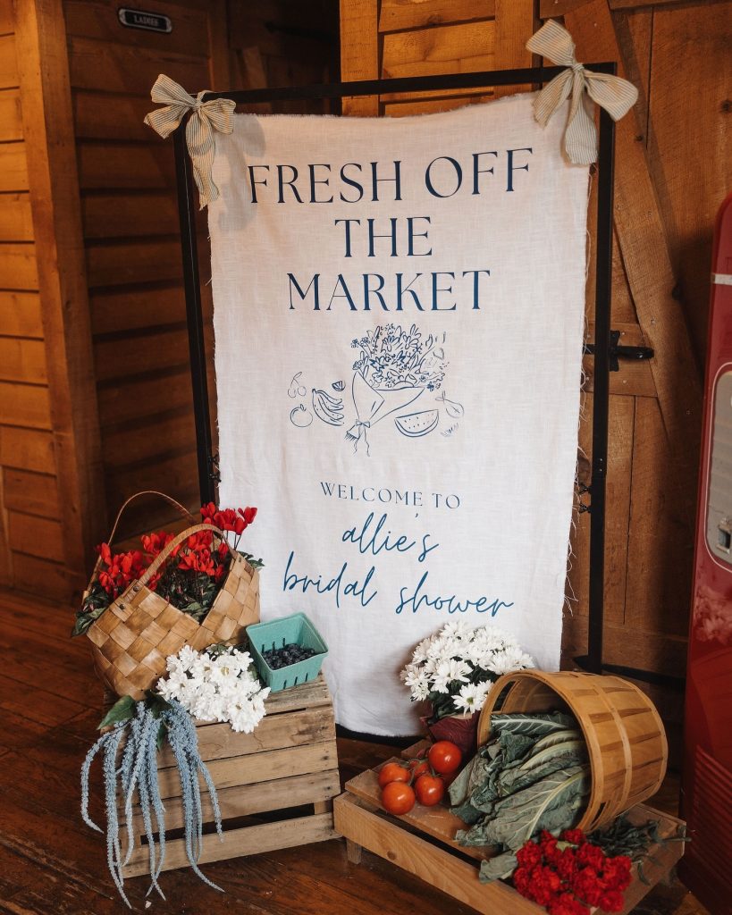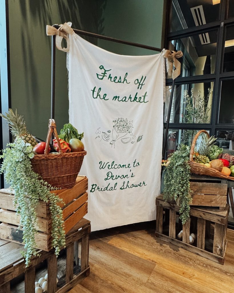 Hang a “Fresh Off the Market” banner to create a charming welcome sign, photo or food display backdrop.