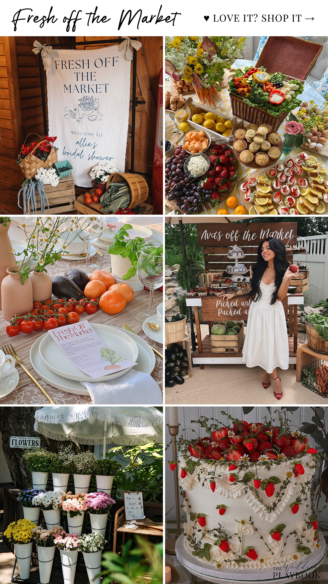 Rustic charm, nature’s abundance and sweet details are at the heart of this “Fresh Off the Market” bridal shower theme!
