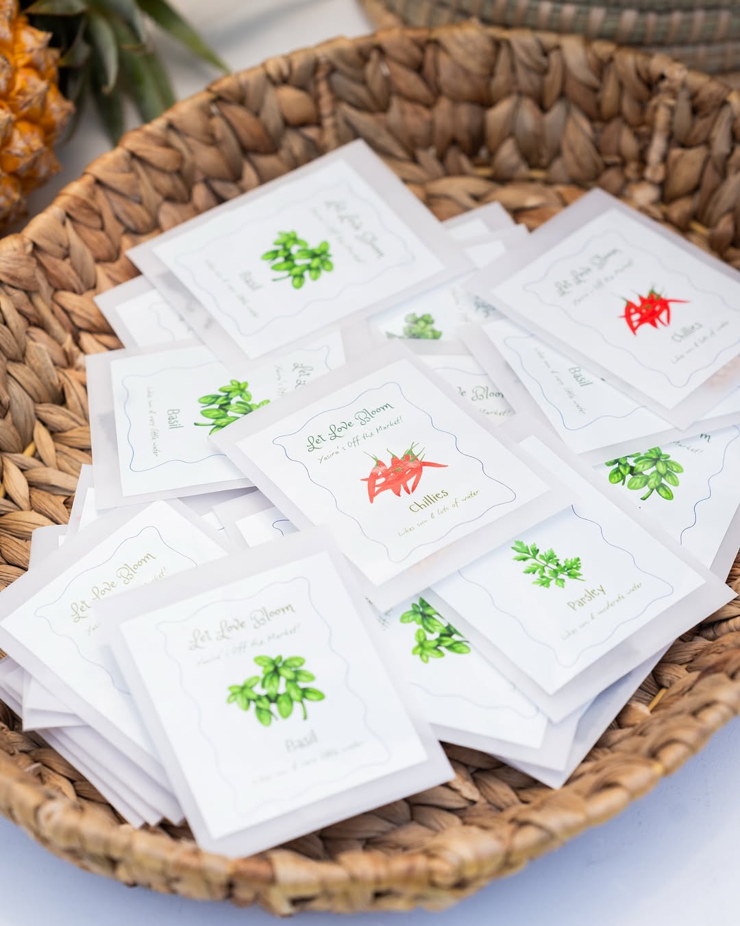 Give a gift that keeps on growing – potted herbs, seed packets, succulent cuttings or flower seed bombs. These plantable favors allow guests to create and enjoy their own market garden.