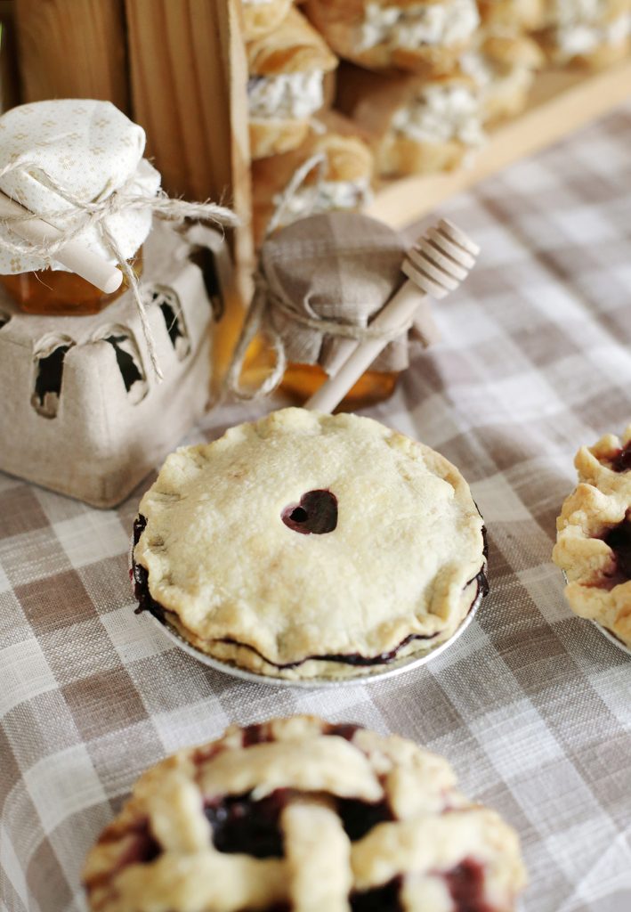 Top an elegant white buttercream cake with berries or figs, or serve up a sweet pie station for a delicious finish.
