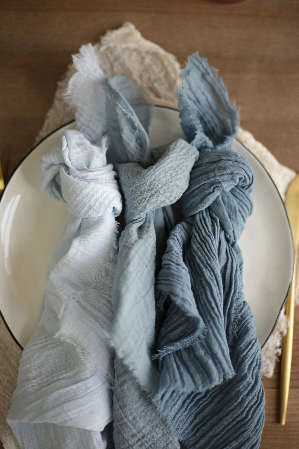 Shades of Blue Hand-Dyed Fabric Wedding Napkins