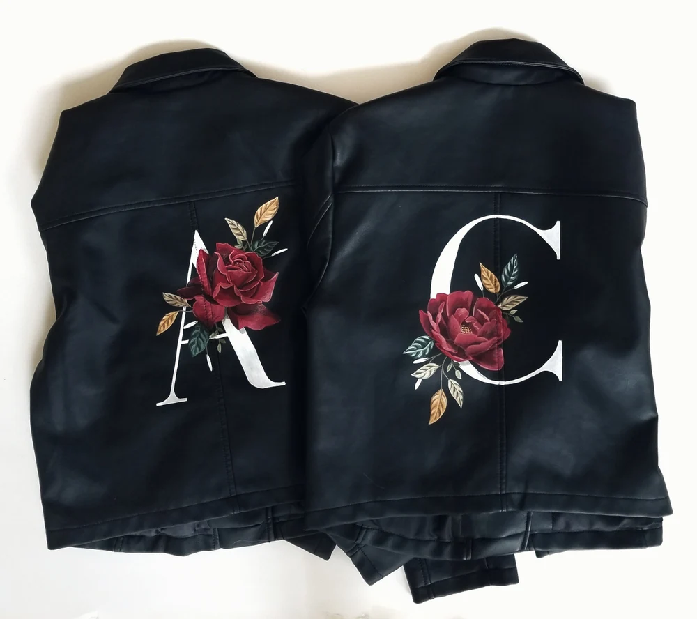 This bridal party jacket design collection offers coordinated yet individually personalised designs for the entire wedding party. Each jacket’s artwork (jacket not included in this listing) can be customised with unique details like zodiac signs or floral designs to reflect individual style. Professional consultation ensures a cohesive look with personalised elements across multiple jackets.