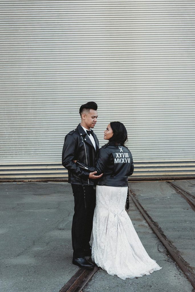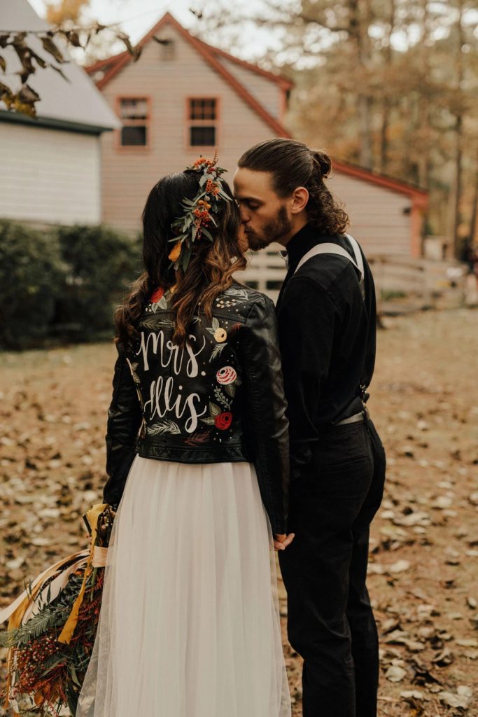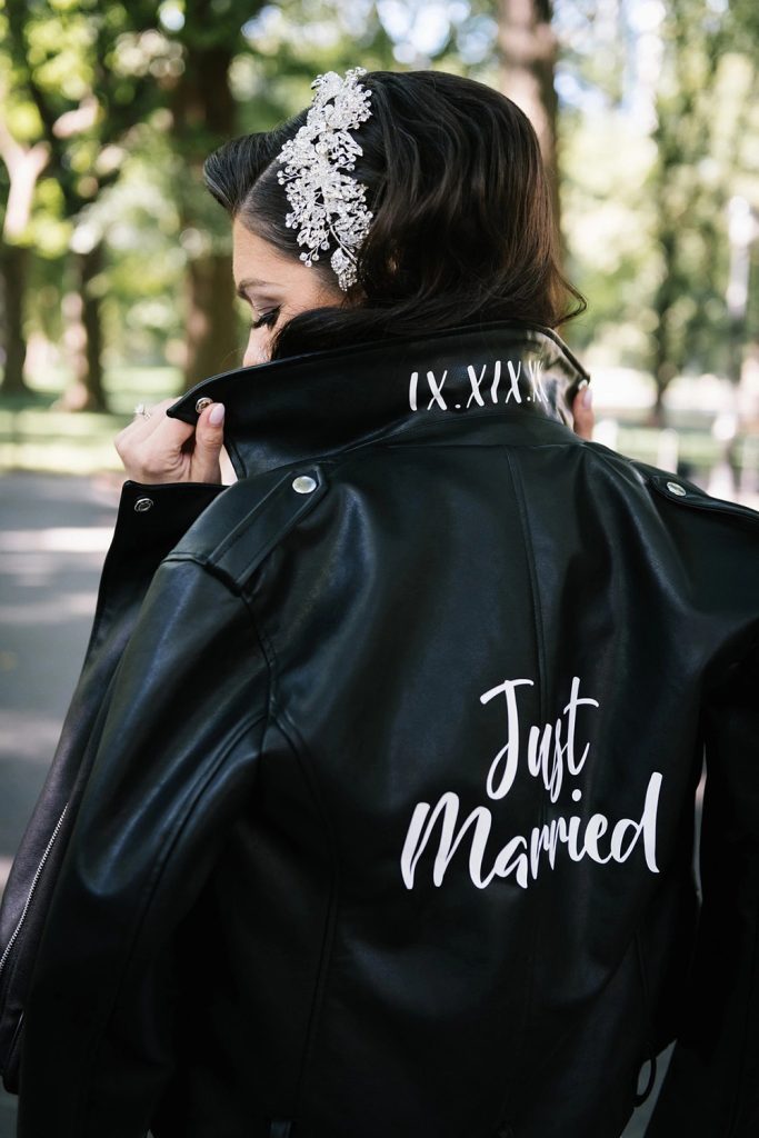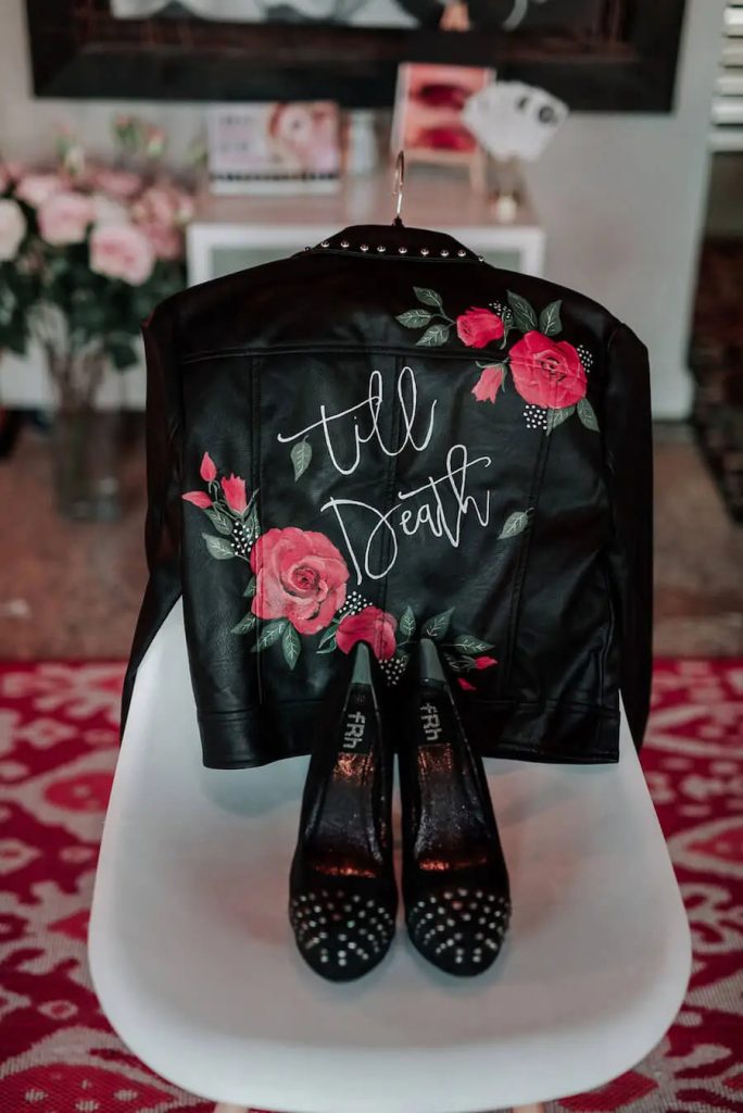 If you’re all about making a bold statement, a leather wedding jacket brings the rock n’ roll vibes! A classic black or white biker jacket brilliantly contrasts with sleek suits or flowing gowns, making it a perfect pick for couples who love the unconventional.