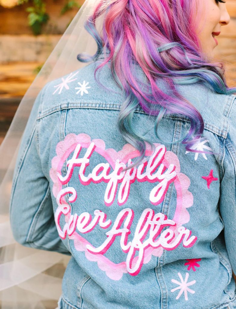 If you like to have fun with fashion, your wedding jacket can incorporate all kinds of expressive touches. Fringe, embroidery, beadwork, patches and heat transfer vinyl let you go all out with your creativity. Embrace colour and texture for a standout look that celebrates your playful personal style.