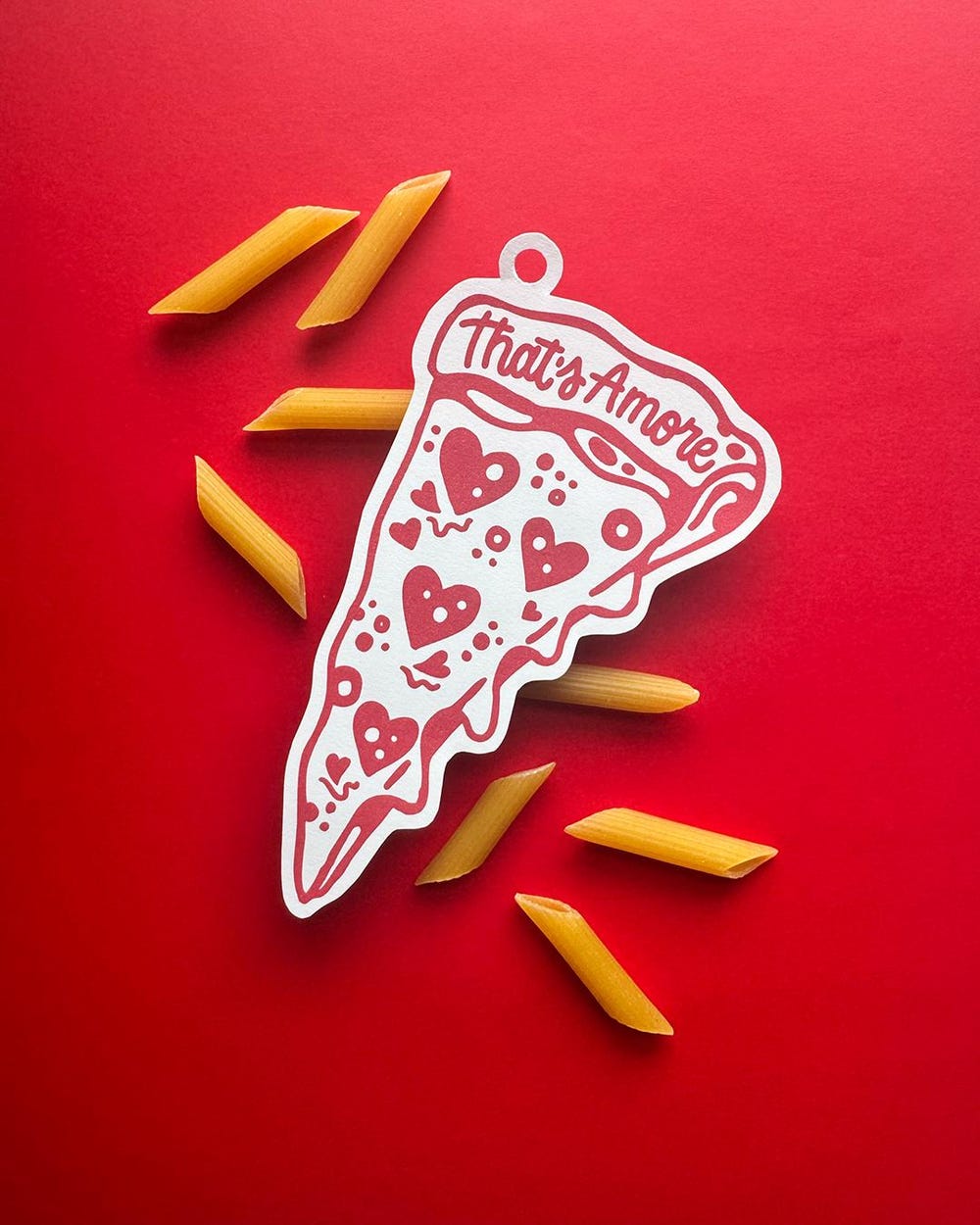 “That’s Amore” Bridal Shower Gift Tag, Red & White Pizza Slice