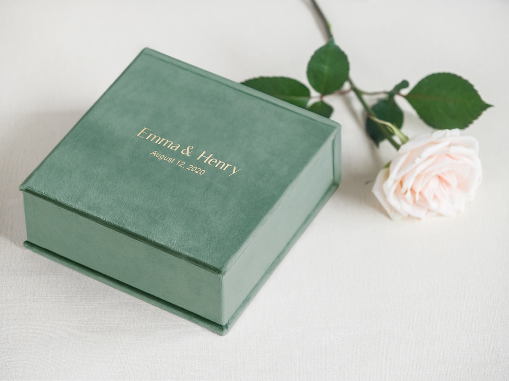 It’s More than just a ring box, this high quality personalized wedding ring box comes with a removable ring bearer pillow! Each box is handmade with care from soft Italian velvet and matching Japanese ribbon to give an elegant finish.