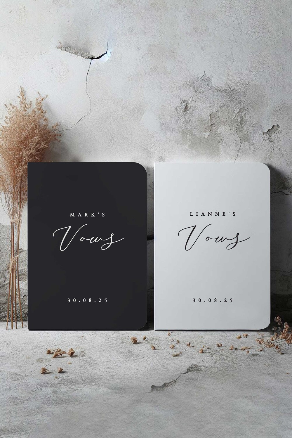 Modern and minimalist, these black and white paper wedding vow books can be printed inside or left blank for you to handwrite your promises. Personalised with your names and wedding date, you can select from a large range of cover colours and choose whether your preferred font is foiled or printed. They can also be used for a letter to your beloved, ceremony reading or speech.