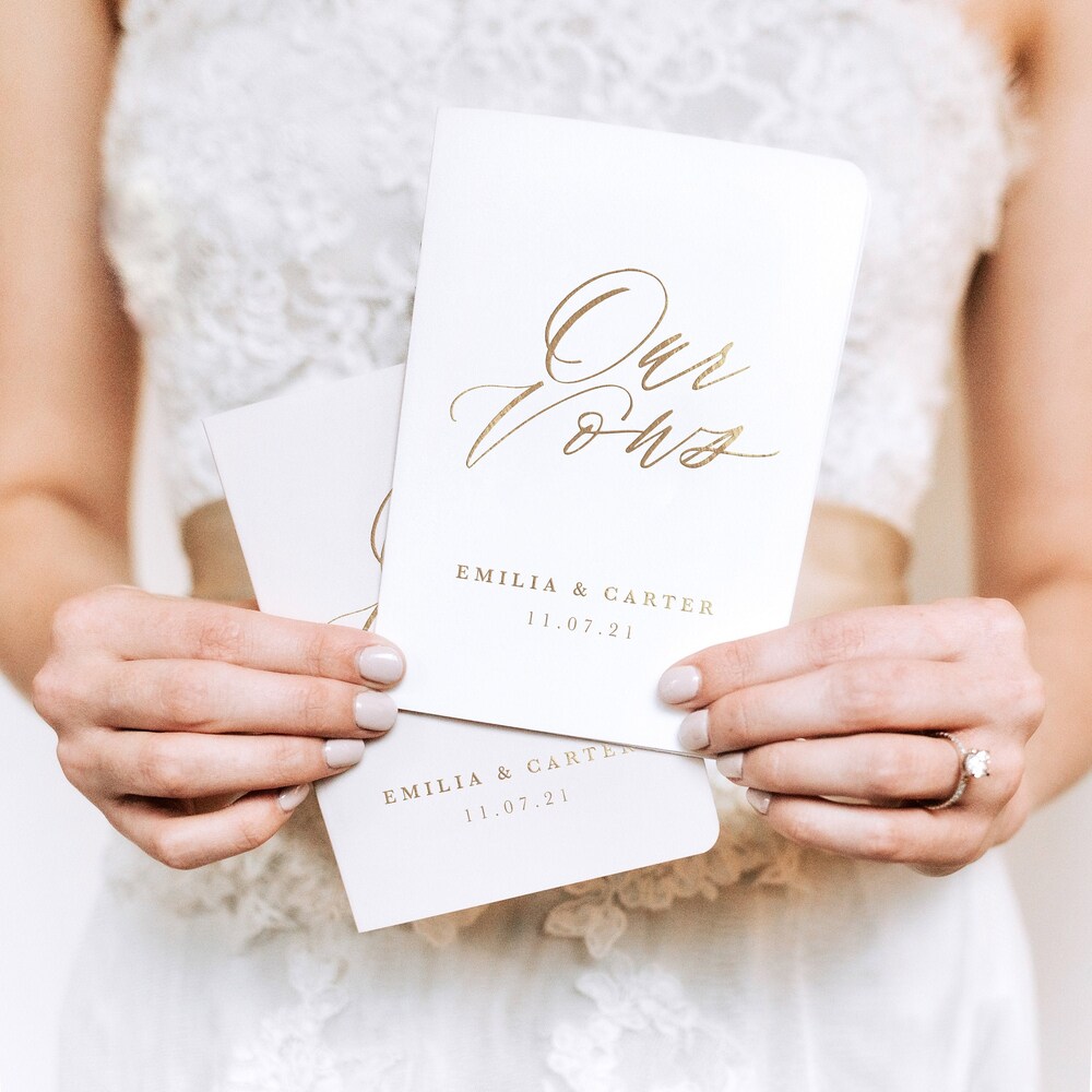 Set of 2 ‘Our Vows’ Classic Wedding Vow Books with Metallic Foil