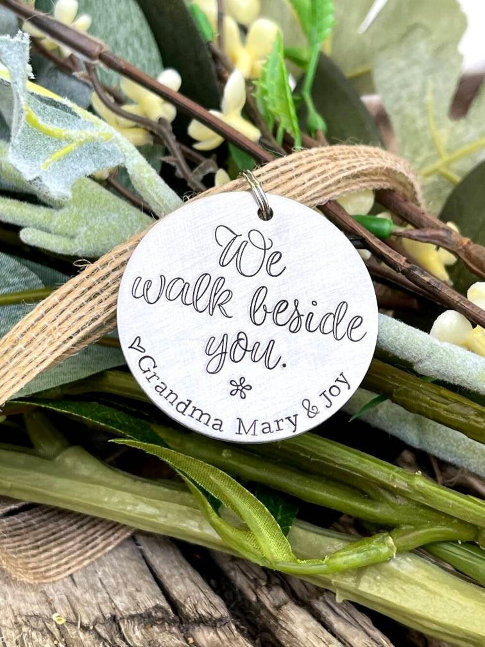We Walk Beside You Hand Stamped Wedding Bouquet Charm
