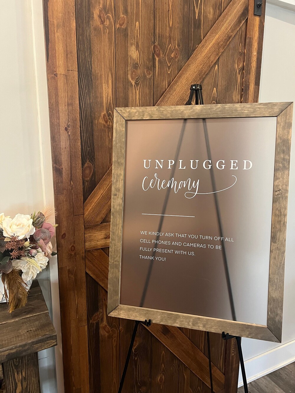 Frosted Acrylic Unplugged Wedding Ceremony Sign with Wooden Frame