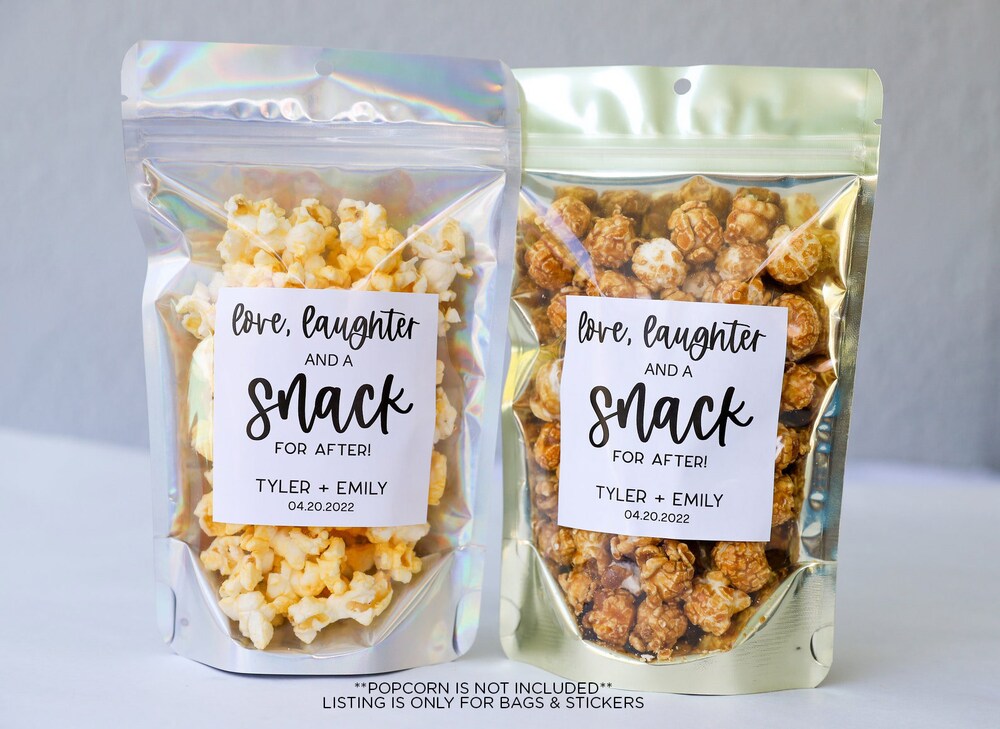 “Love, Laughter and a Snack for After” Personalized Wedding Treat Bags