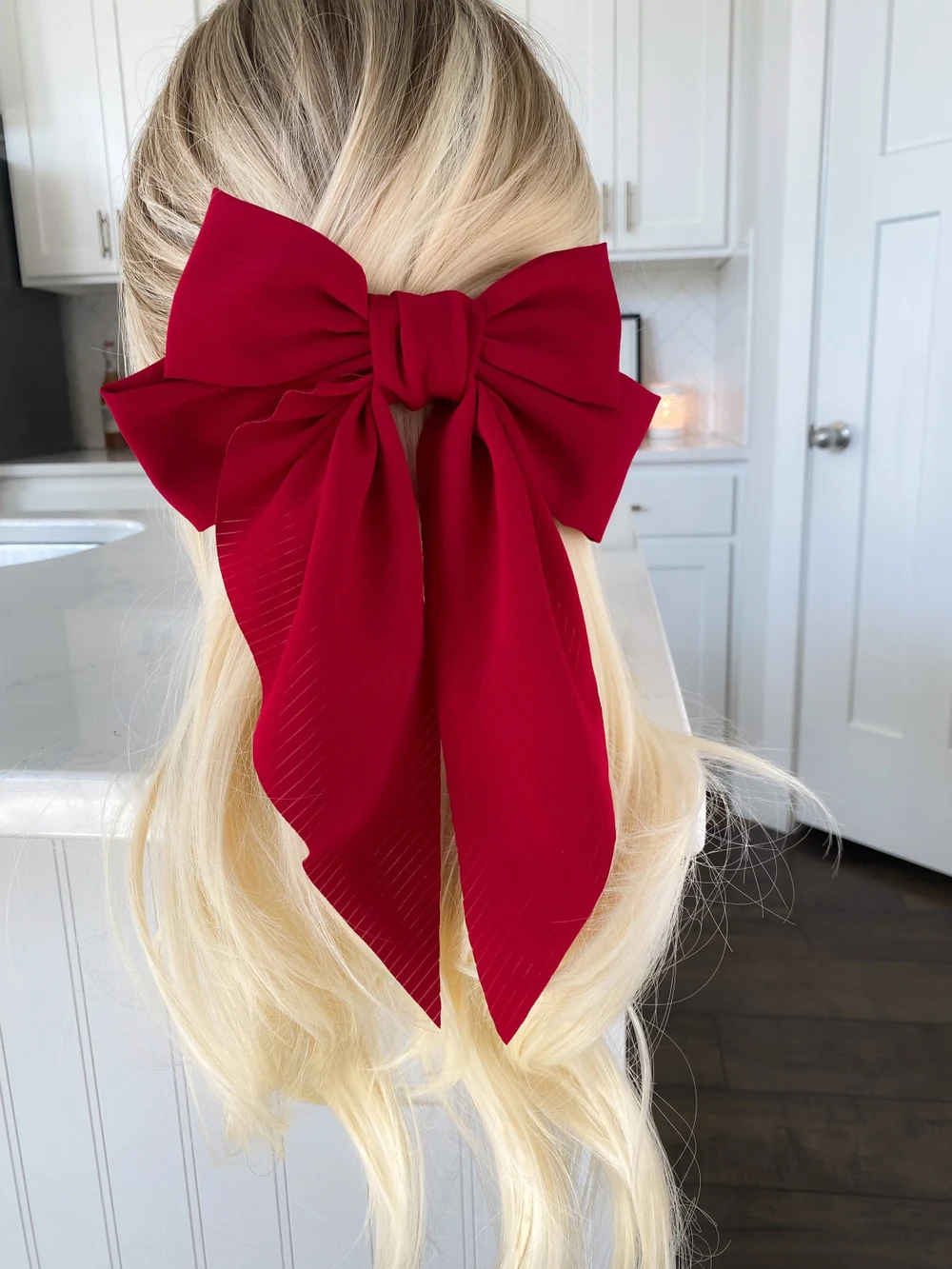 This large and elegant red hair bow is perfect for accessorising a romantic half-up half-down wedding hairstyle.