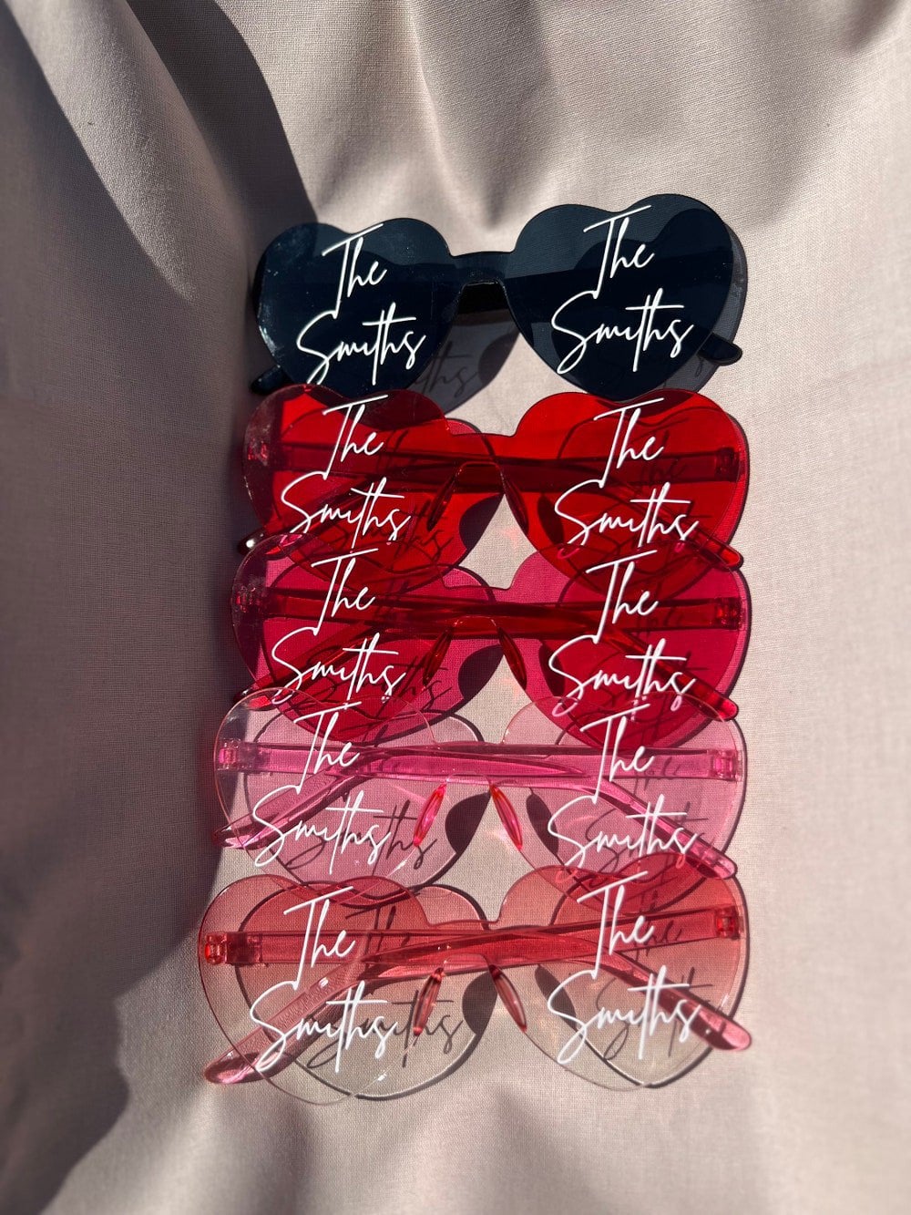 Looking for that perfect blend of romance and nostalgia for your special day? These heart-shaped sunglasses are available in black, red and pink to match your wedding theme and customised with your surname for a fun “Just Married” photo opp. Let the love shine through!