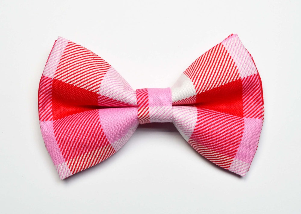 Handcrafted using 100% cotton fabric, this red and pink plaid bow tie is pre-tied, double layered and strengthened with interfacing for minimal fuss.