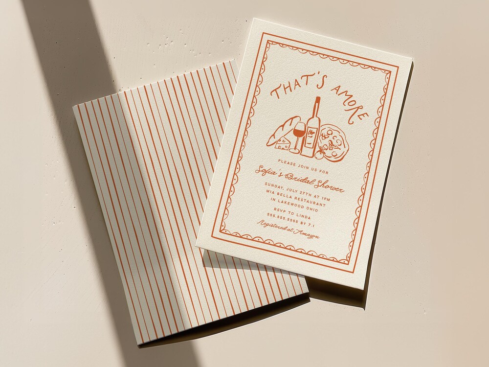 This charming Italian-inspired invitation template makes it effortless to create beautiful bridal shower invitations that capture romantic Tuscan vibes. With the user-friendly Corjl platform, you can personalize every detail and download your finished invitations for printing or digital sharing within minutes of purchase. Your guests will be delighted by the authentic Italian charm that says,”That’s Amore” for your special celebration.