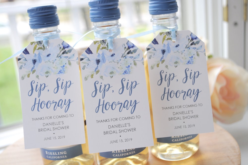 “Sip, Sip Hooray” Bridal Shower Favors Tags for Mini Wine or Champagne Bottles