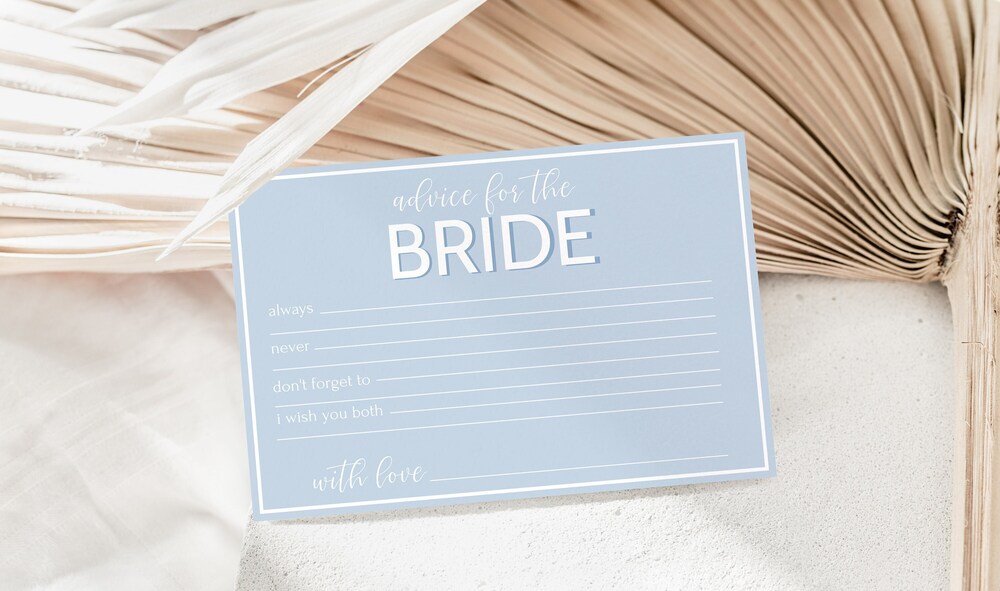 “Advice for the Bride” Bridal Shower Activity Card Template: Blue Modern Style, White Fonts