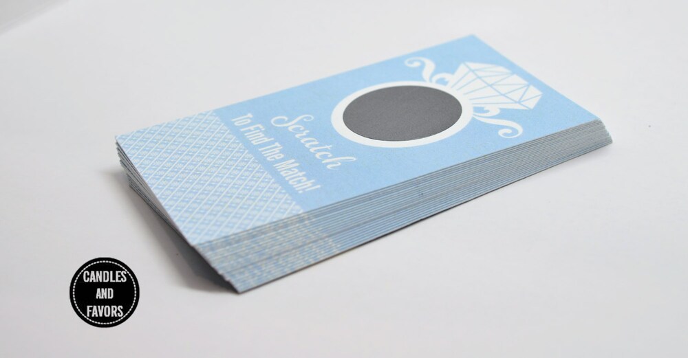 These 20 light blue scratch-off tickets make an exciting and different bridal shower game, with two winning cards featuring engagement rings among three different losing designs. Printed on premium semi-gloss cardstock and sealed in clear cello bags, they’re ready to distribute for instant fun. Your bridal shower guests will love the suspense and excitement of this interactive game that adds playful energy to the your celebration.