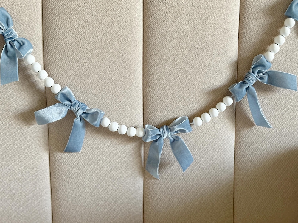 Blue & White Velvet Bows & Wooden Beads Bridal Shower Garland:Other Colours Available