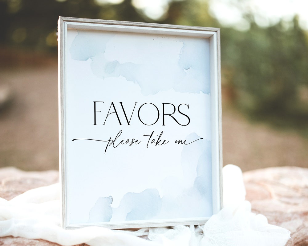 “Favors, Please Take One” Bridal Shower Sign, Dusty Blue Watercolor Clouds Design, Digital Download
