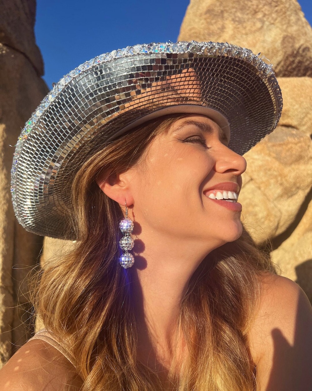 These statement dangle earrings make the perfect accessory for your disco themed bachelorette party, bridesmaid looks or wedding reception outfit.