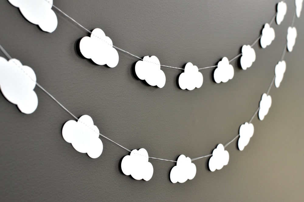 This charming handmade garland features delicate white cardstock clouds that add a dreamy, ethereal touch to your bridal shower celebration. Available in vertical strands or horizontal runs up to 10 feet long, each cloud is carefully crafted and double-sided for beautiful presentation from any angle. Perfect for creating magical photo backdrops or adding subtle elegance to your, “She’s on Cloud Nine” party space that guests will remember long after the celebration ends.