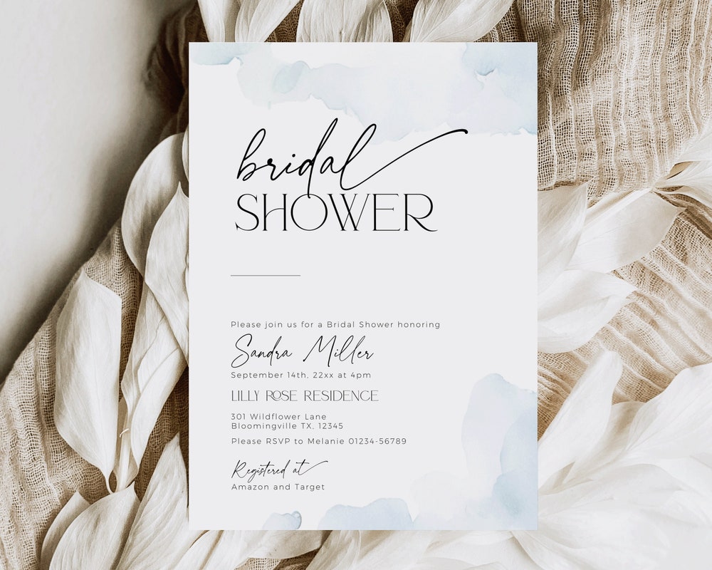 “Bridal Shower” Invitation Digital Download, Soft Blue Watercolor Edge