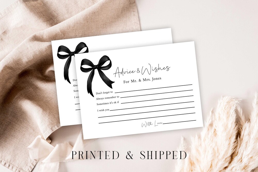 Personalized “Advice and Wishes, for Mr & Mrs…” Bridal Shower Activity, Black Bow Theme – Printed & Shipped