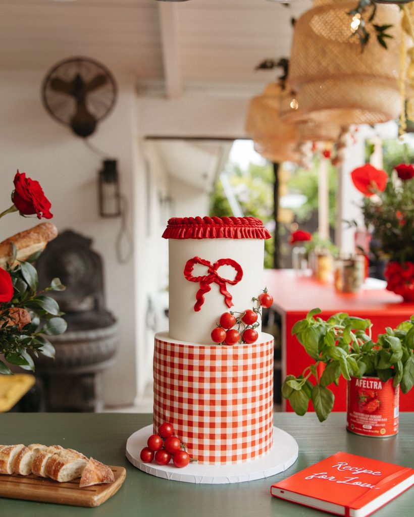 - Design a show-stopping red and white gingham cake adorned with a fondant bow and fresh strawberries that oozes Italian charm.
