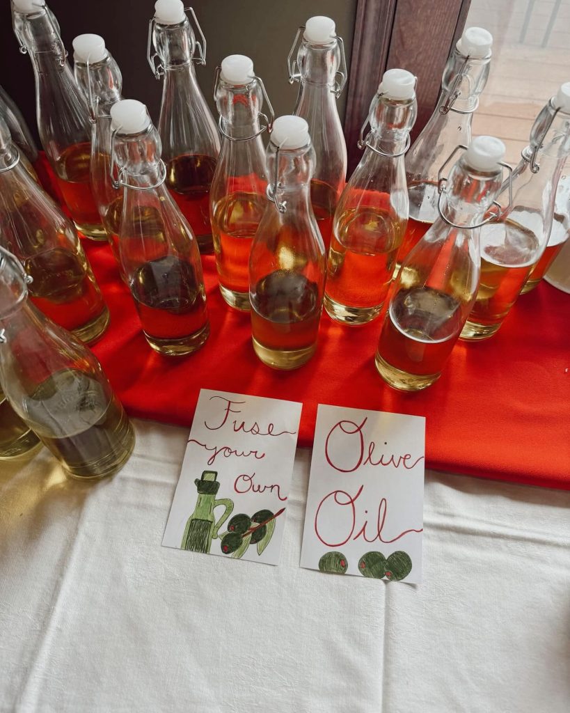 Set up a station with premium olive oil and an array of Italian herbs like rosemary, thyme, basil and garlic, plus decorative bottles and custom labels for guests to create their own culinary favors.