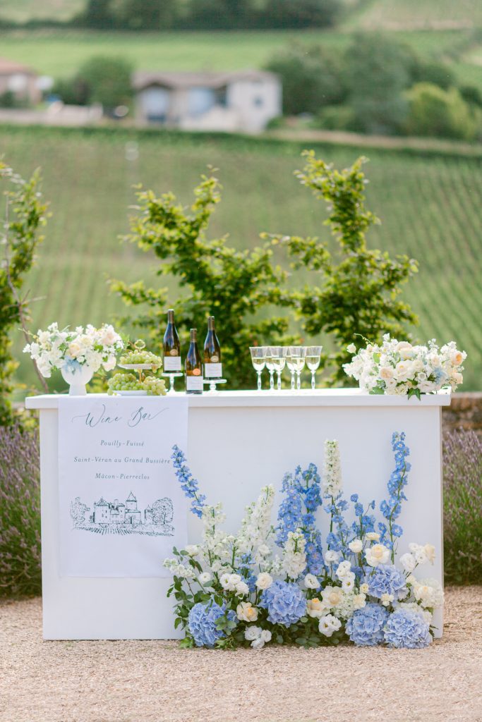 Delight guests with blueberry flavored lollipops or mini wine and champagne bottles adorned with personalized “Sip, Sip Hooray” favor tags.