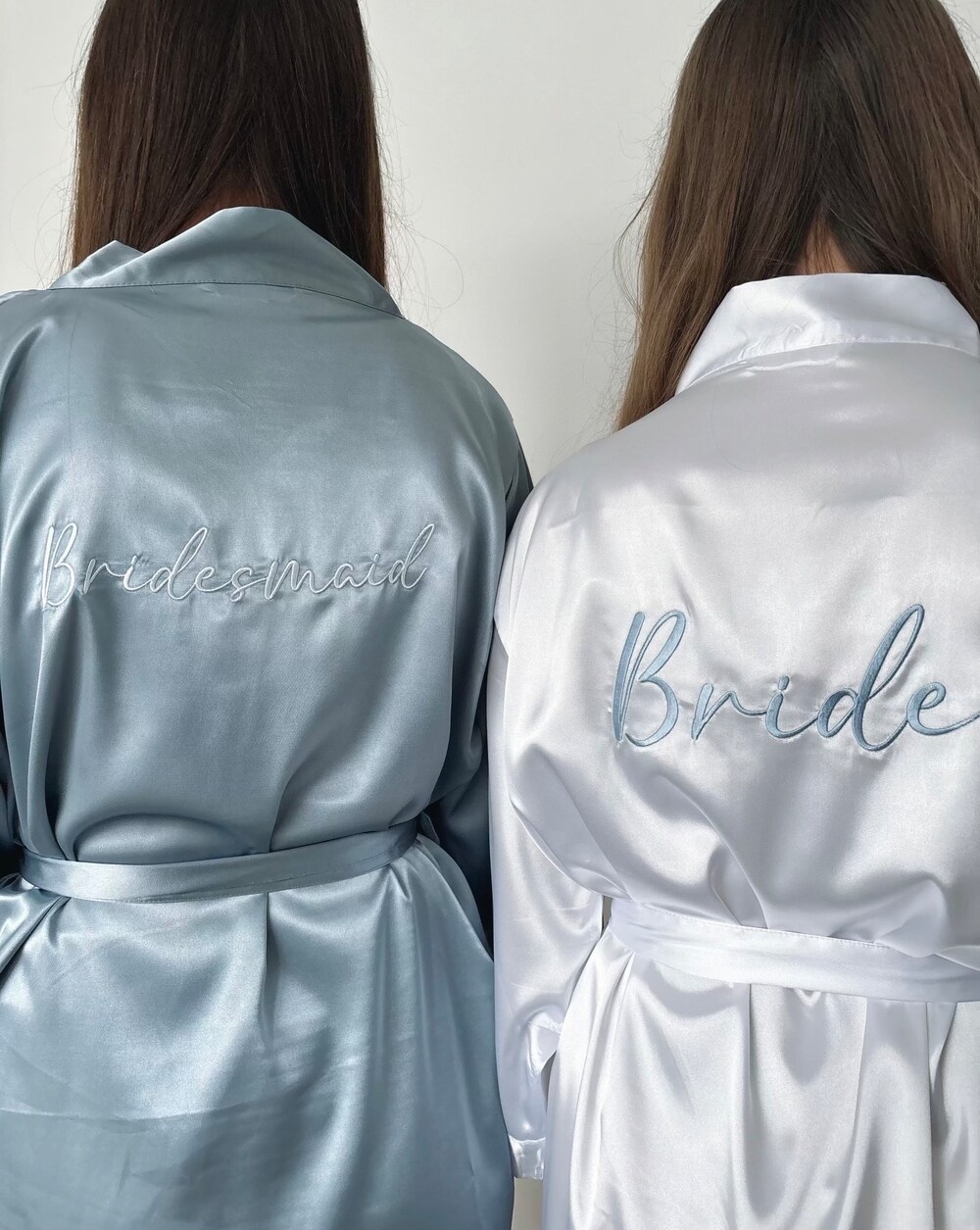 Personalized Dusty Blue Embroidered Bridesmaid Satin Robes