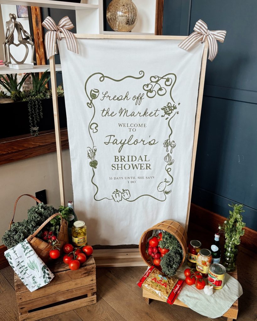 Hang a “Fresh Off the Market” banner to create a charming welcome sign, photo or food display backdrop.