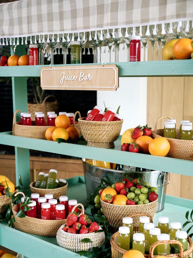 Create an authentic farmers market experience with a display of seasonal produce. Provide string bags, totes or baskets so guests can “shop” for items to take home.