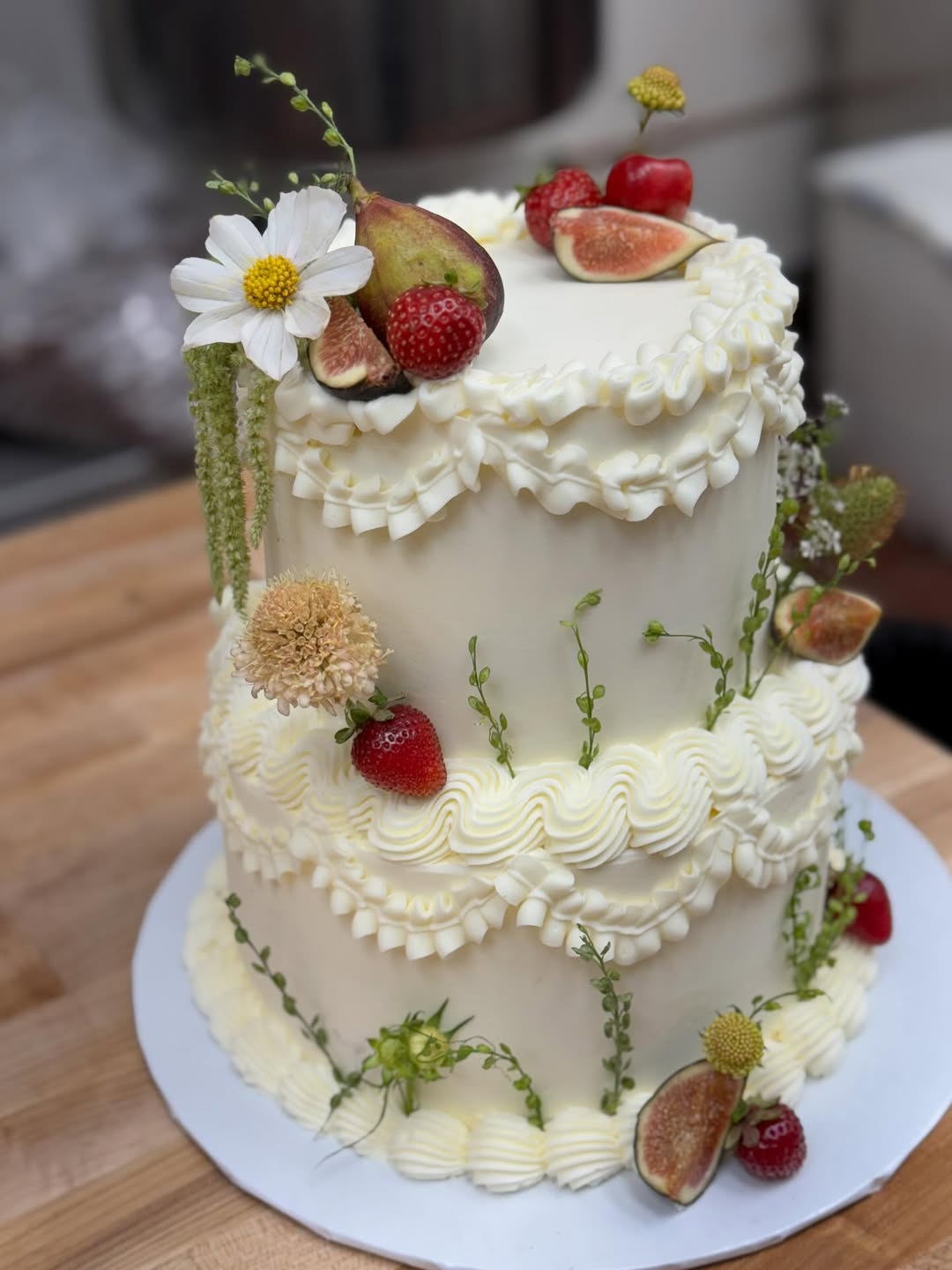 Top an elegant white buttercream cake with berries or figs, or serve up a sweet pie station for a delicious finish.