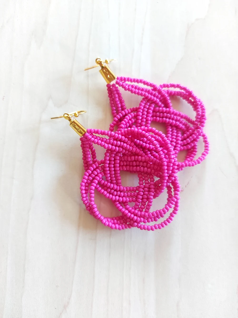 These hot pink statement earrings add a vibrant pop of colour to your bridal party outfits. Crafted with high-quality Czech Republic and Japanese glass seed beads, these dangle boho earrings are available in various sizes from tiny 1.3cm versions to dramatic 5cm statement pieces. Your bridesmaids will appreciate these stylish accessories that showcase exceptional craftsmanship, offering modern and refreshing colour combinations that perfectly complement wedding attire while providing a thoughtful keepsake they’ll wear again.