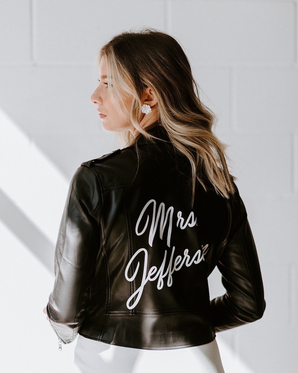 Custom Faux Leather Wedding Jacket With Vinyl Lettering – Black or Cream