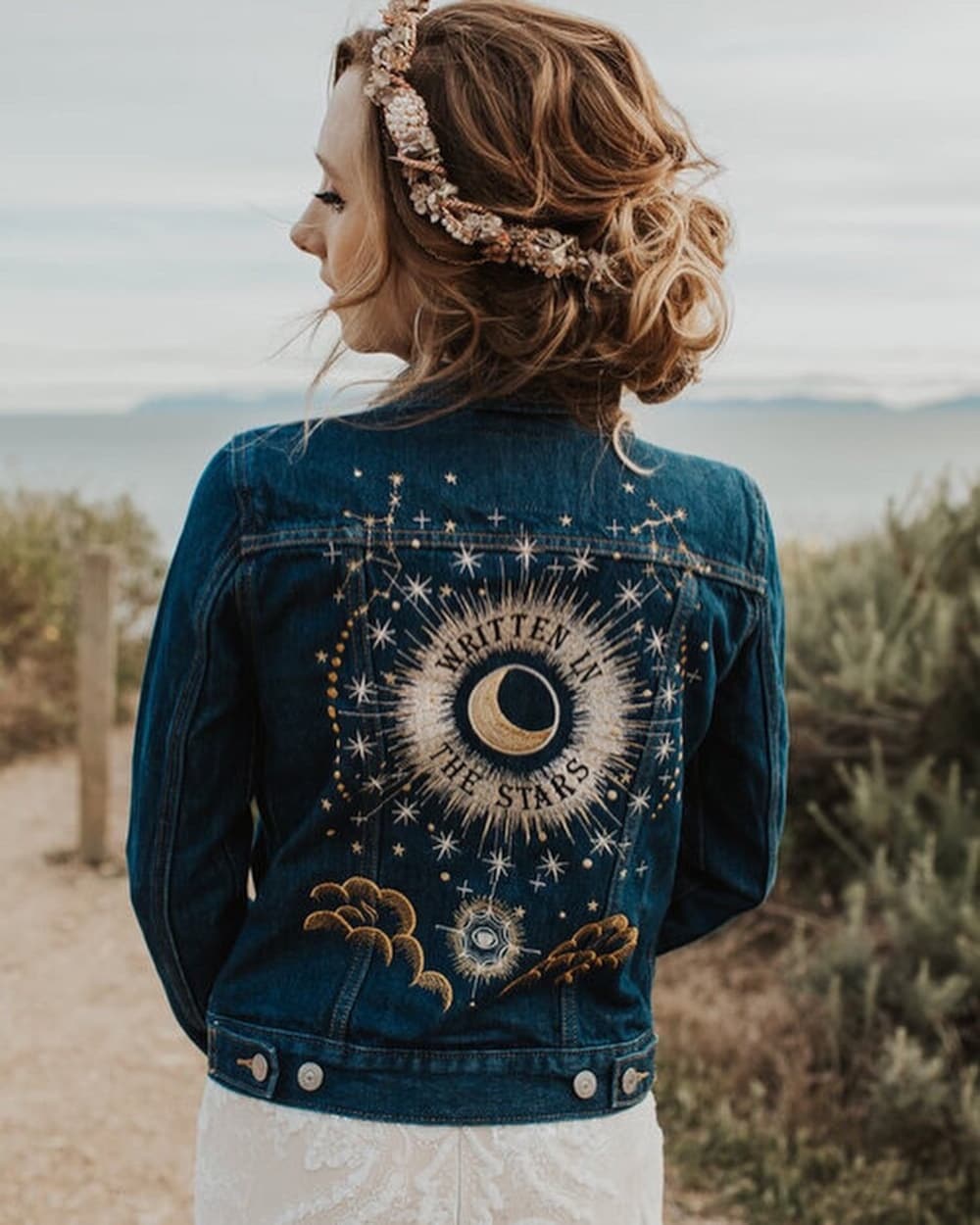 Personalised “Written in the Stars” Embroidered Denim Wedding Jacket