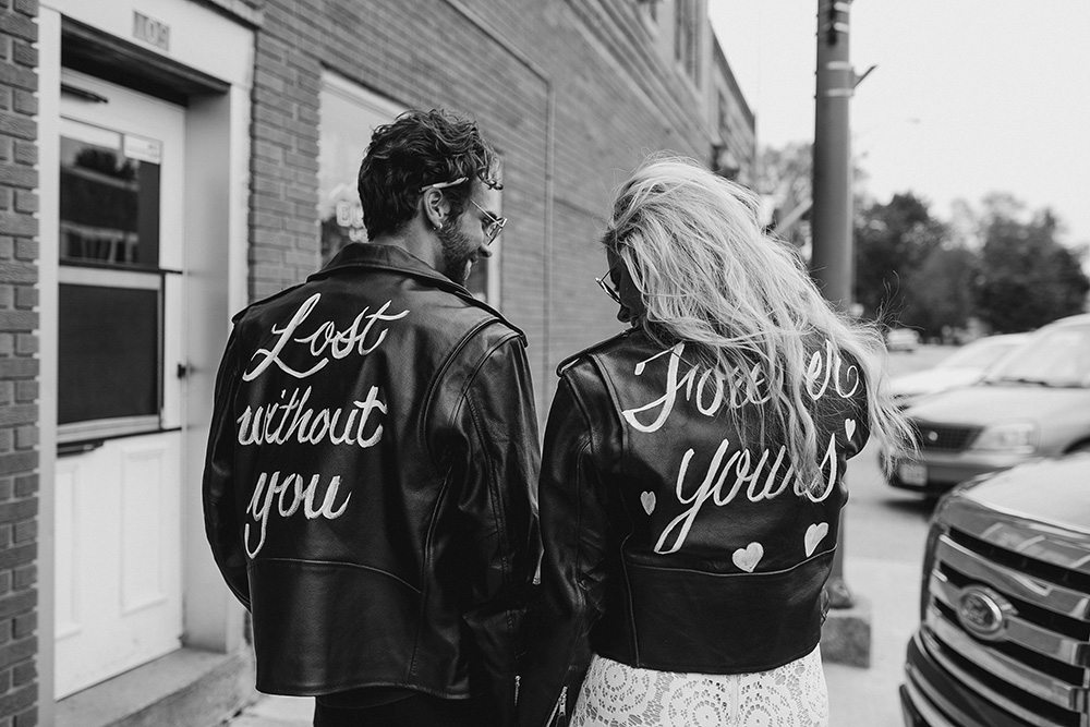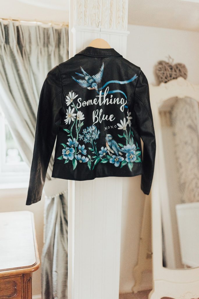 The back panel of your jacket makes the perfect blank canvas for larger scale art. Have a meaningful motif or phrase handpainted, stitched or transferred onto the fabric. Imagine those loved-up portraits of you embracing one another at the ceremony, enjoying a private moment walking hand-in-hand or sharing a laugh together during the reception with your custom design on full display!