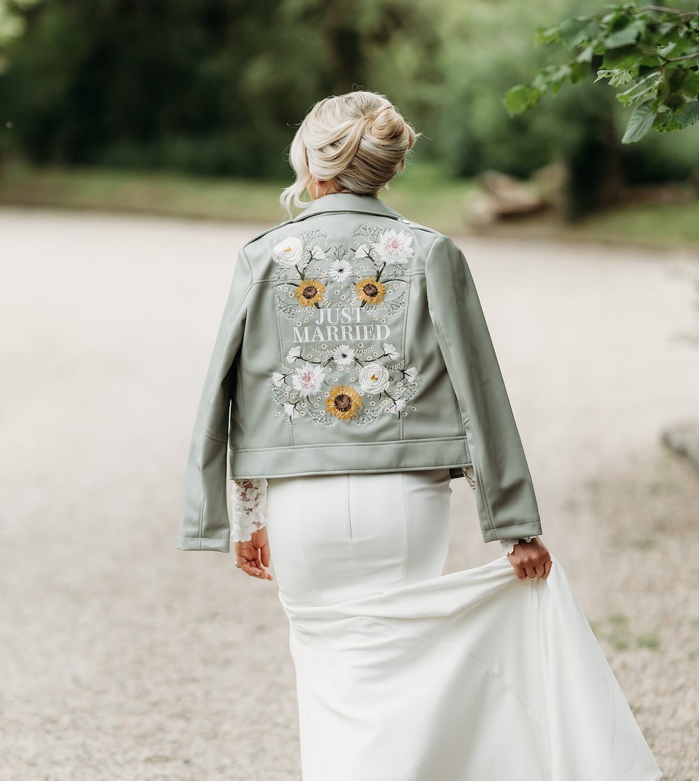 “Just Married” Sunflower Embroidered Wedding Jacket