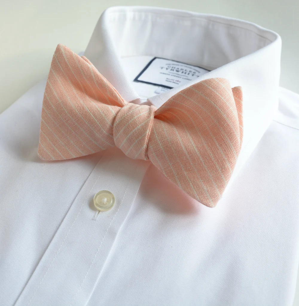 Peach Striped Linen Wedding Bow Tie