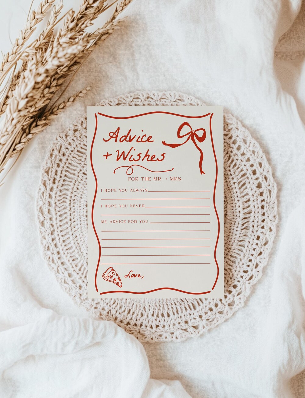 This hand-drawn Italian-themed digital download lets guests share their best “Advice and Wishes” for the bride-to-be. Fully editable through Templett’s user-friendly platform, you can customize all text and colors to create the perfect addition to your bridal shower celebration. Your guests will love participating in this thoughtful tradition while you’ll treasure their heartfelt messages.