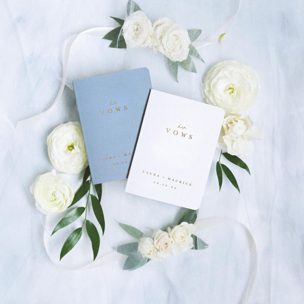Set of 2 Blue and White Personalised Wedding Vow Books with Metallic Foil