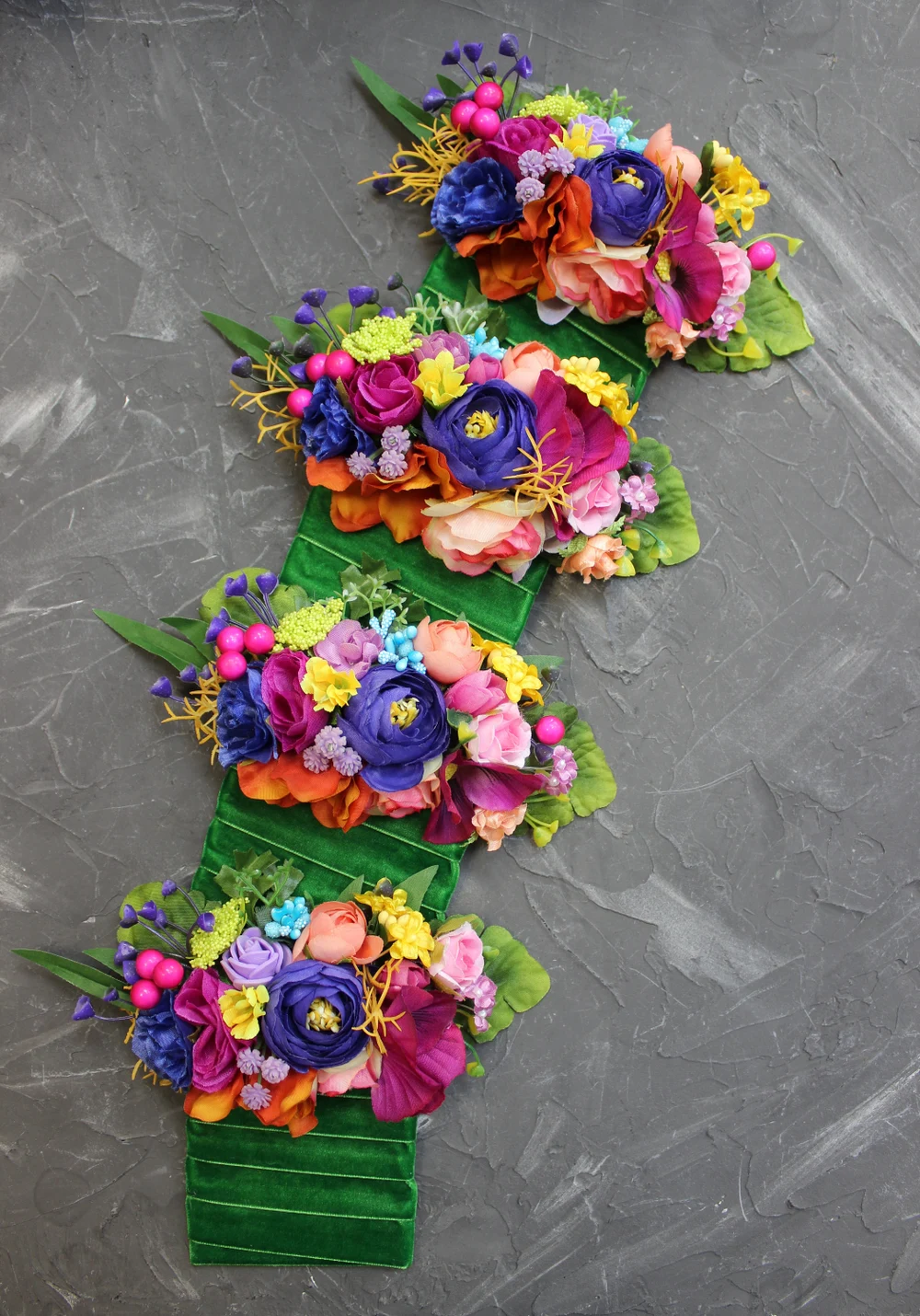 No need to worry about wilting or how to attach this stunning floral pocket square for your groom and groomsmen’s suits! Made from greenery, velvet ribbon and stunning silk flowers, they can be tailored to your exact color and style preferences. A perfect alternative to boutonnieres for your wedding party, this faux floral pocket square is in navy, purple, fuchsia, yellow, orange and green hues.