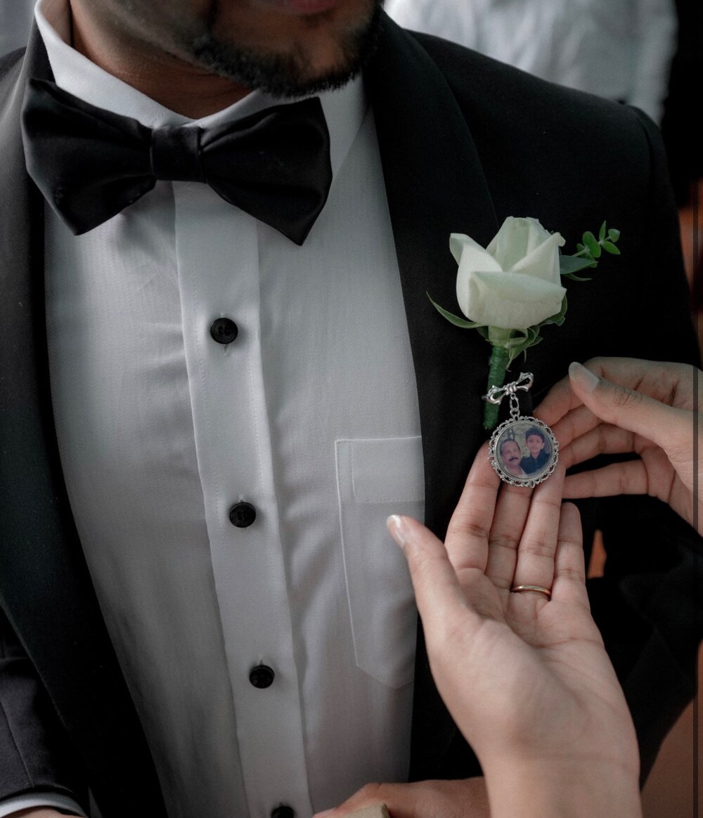 Vintage Inspired Photo Charm for Wedding Suit Jacket