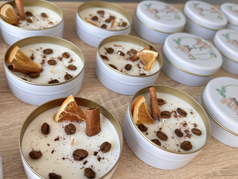 Personalised Coffee Soy Candle Wedding Favors With Orange & Cinnamon