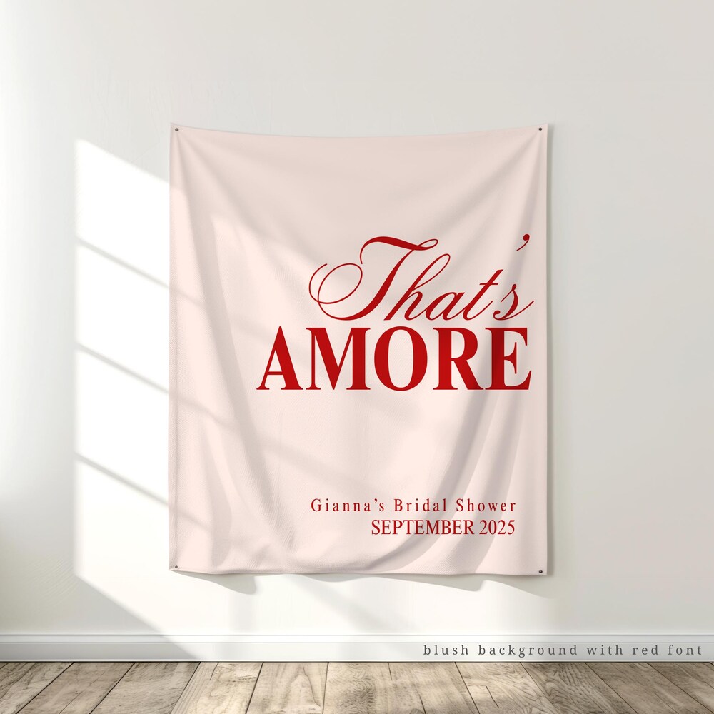 Create an impressive backdrop for your bridal shower with this personalized, “That’s Amore” polyester fabric banner! Available in multiple sizes and fully customizable with your choice of colors and text, this lightweight banner is perfect for bridal showers and bachelorette parties, and travels easily for use in any venue. You’ll love the professional, high-impact design that creates truly memorable and Instagram-worthy moments.