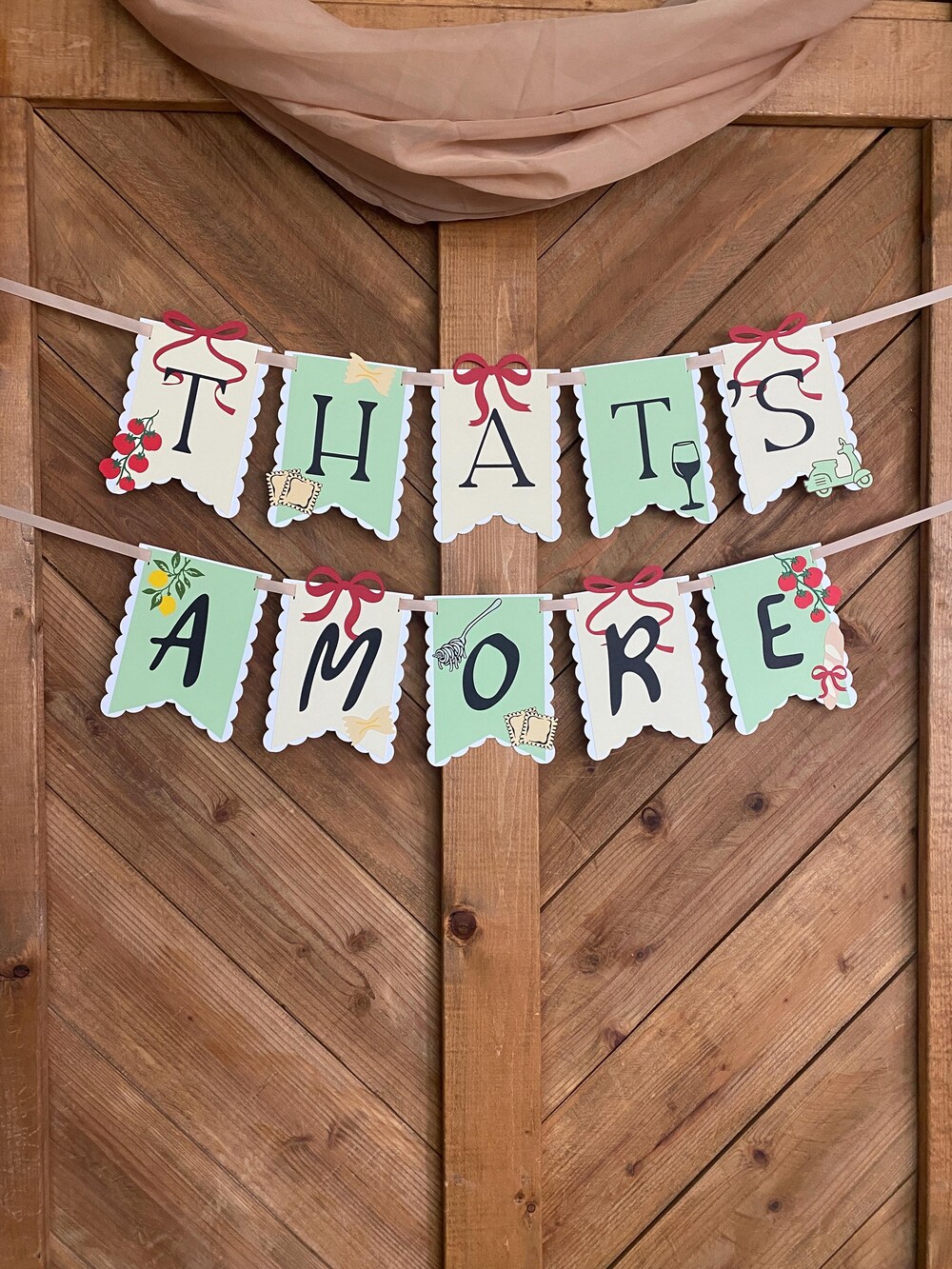“That’s Amore” Bridal Shower Banner, Flag Letters Scallop Edged, Italian Food Theme